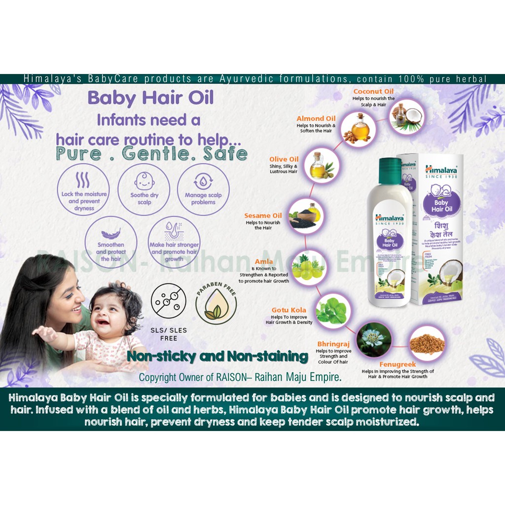Himalaya baby hair oil is designed to nourish scalp and hair. Himalaya herbal baby massage oil. Johnson's baby hair oil is one of the most trusted baby products among parents. This baby hair oil is formulated for babies and useful to promote hair growth, nourish hair and reduces dryness, and keeps the scalp moisturized. Baby lotion a natural moisturizer 200ml, baby massage oil 100ml, 200g himalaya prickly heat baby powder and expiry 01/2022 are among the most popular models of himalaya health.